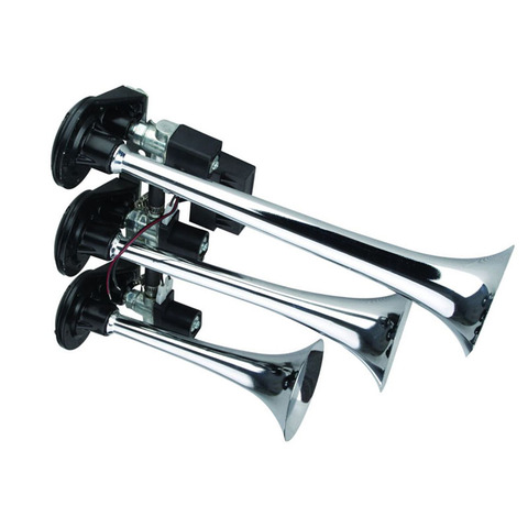 Nouveau 12/24v 135db Super Fort Chrome aucune rouille Triple Trompette Klaxon Bateau Bus Camion Train moto klaxon de voiture GZHAOER HT-102